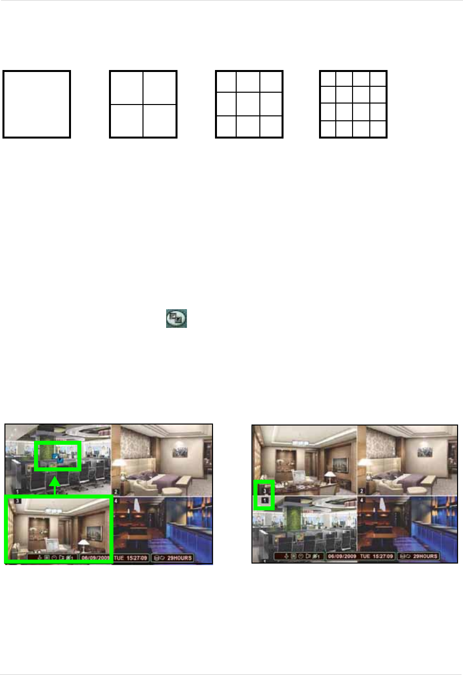 - 1. Left-Button: While in a split-screen display mode, double-click an individual channel to view it in full-screen; double-click...