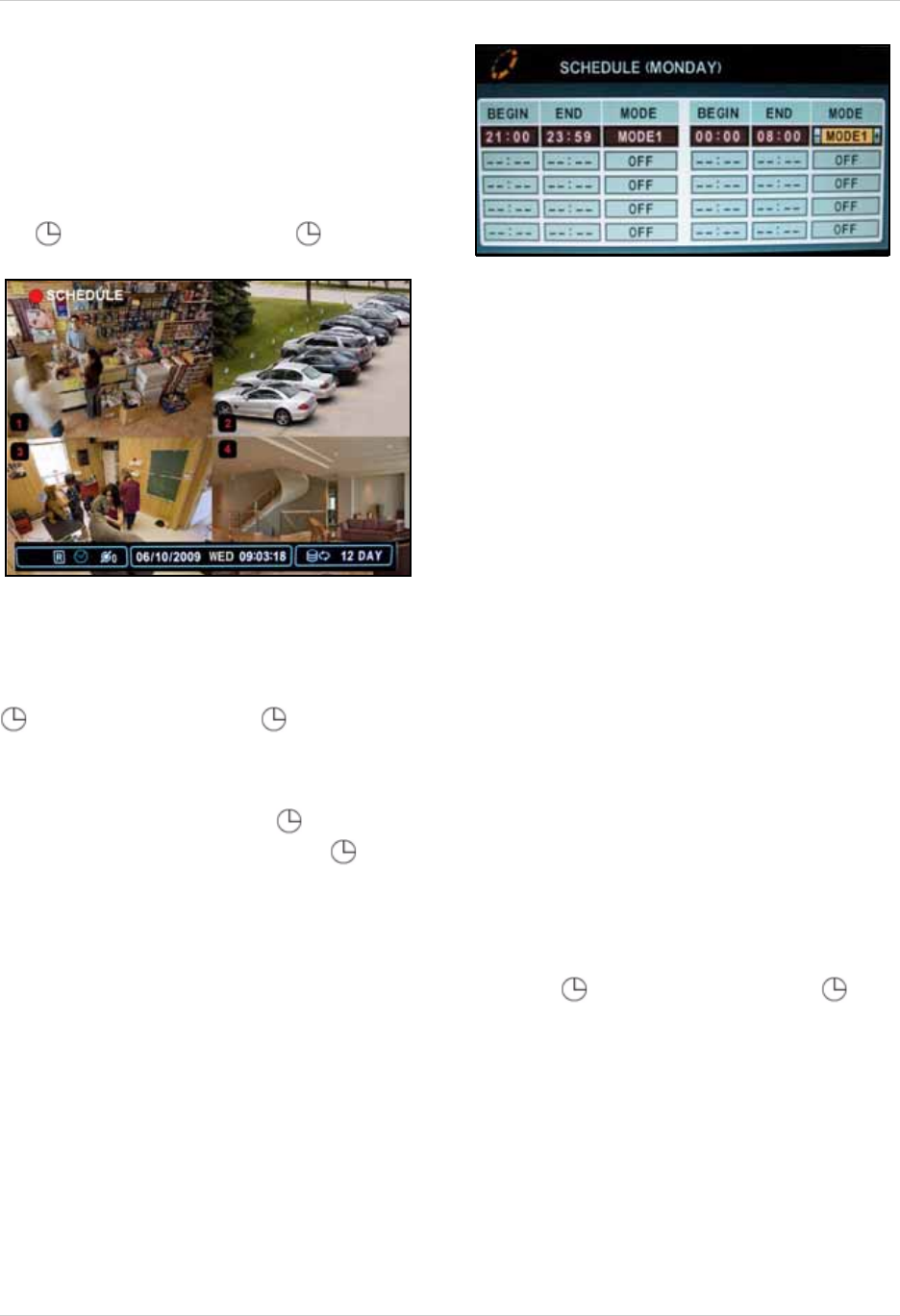 - . Live viewing: Start/stop scheduled recording (Recording Schedule must already be configured; password required for stoppage)