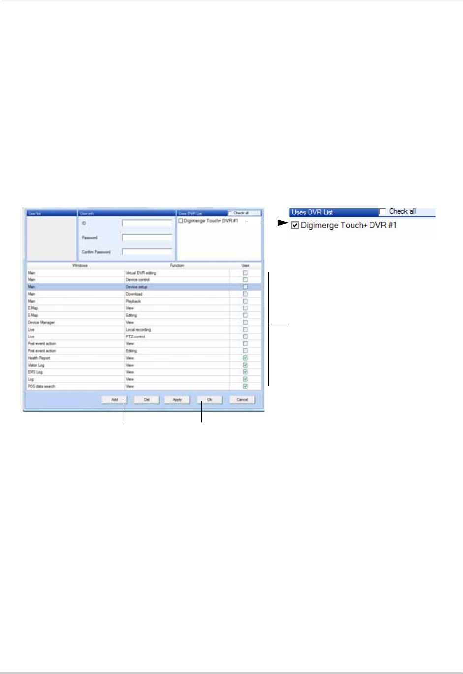 You can add multiple users to CMS-DH, specifying the DVR menus that each user is allowed to