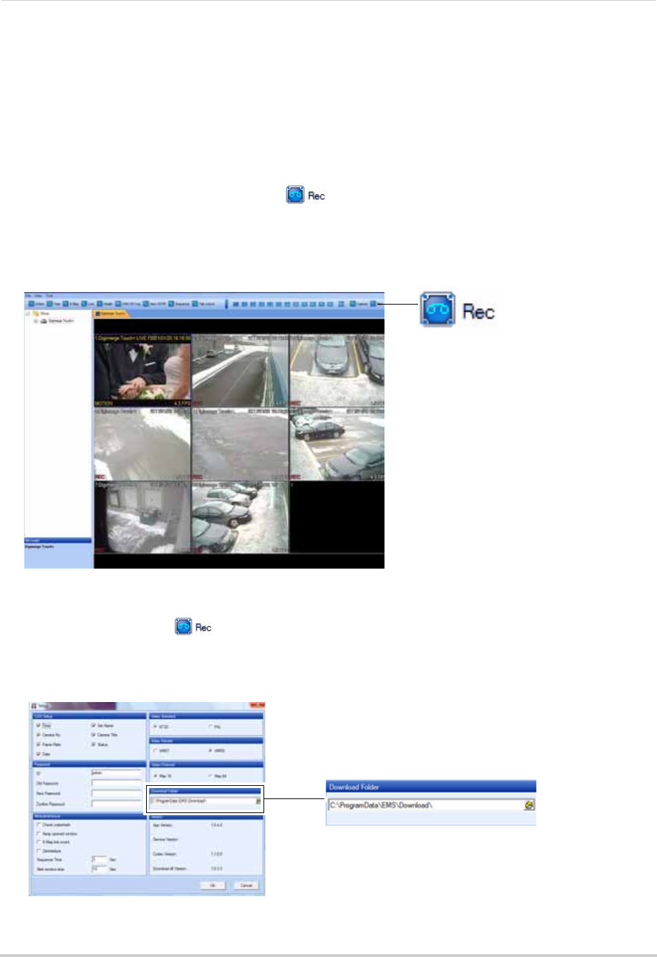 - . Live viewing: Start/Stop recording (password required for stoppage)