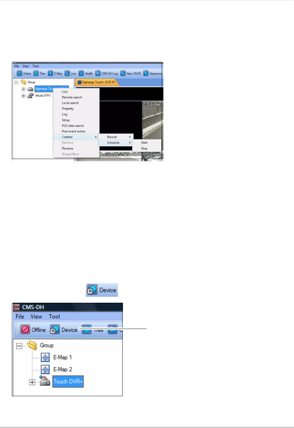- . Live viewing: Start/stop scheduled recording (Recording Schedule must already be configured; password required for stoppage)