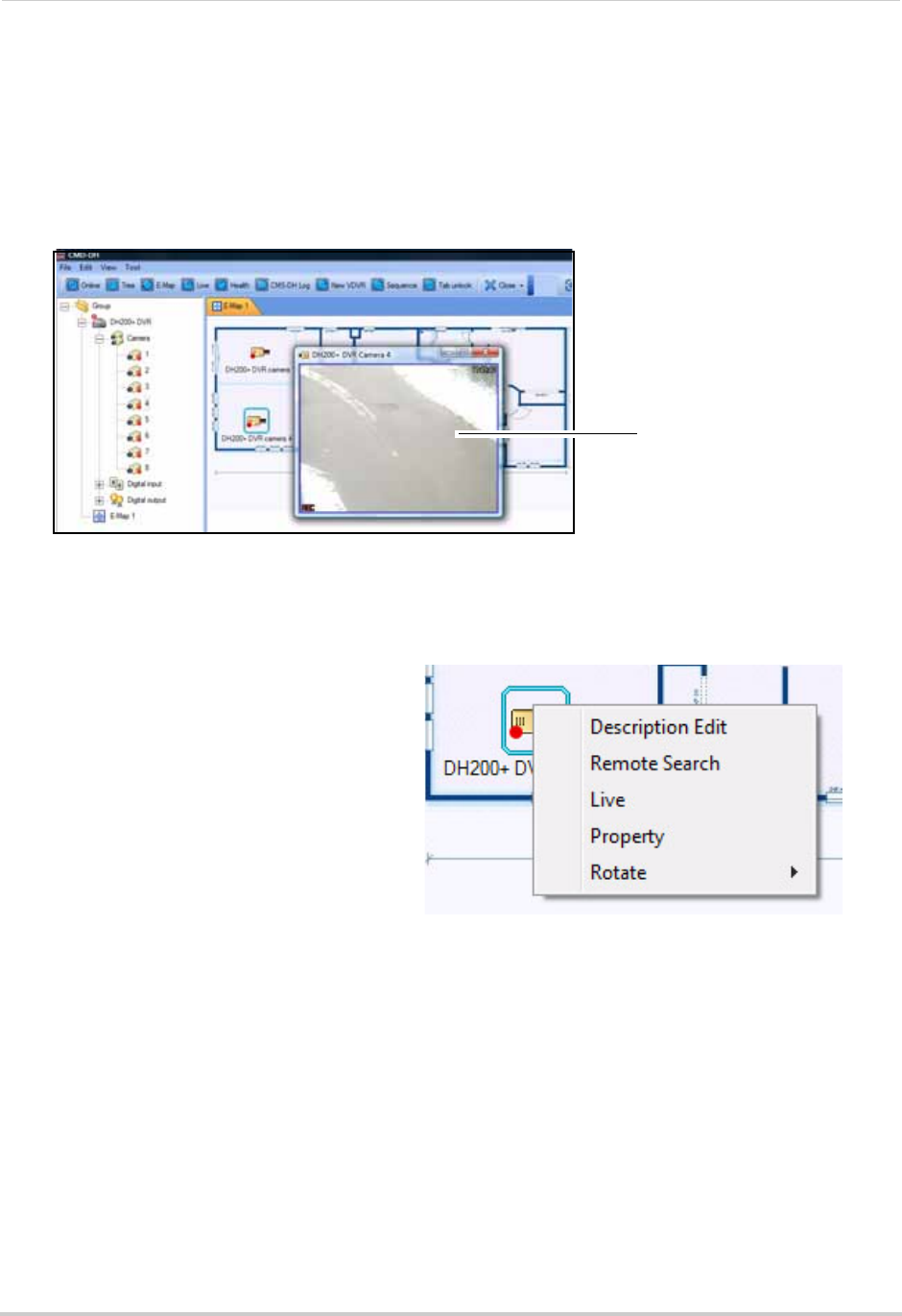 Once you have mapped your cameras on E-Map, you can view, and search channels from the