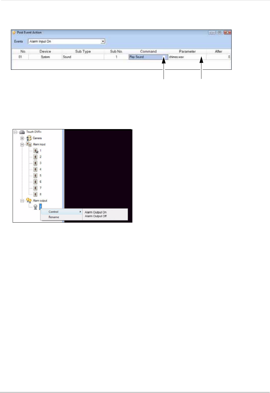 arm output on to enable the alarm out device, or Alarm output off to disable the