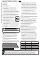 EN ES FR Wichtige Sicherheitsanweisungen – DE Lesen Sie diese Anleitungen. Bewahren Sie diese Anleitungen auf. Beachten Sie alle Warnungen. Befolgen Sie alle Anleitungen. Betreiben Sie dieses Gerät nicht in der Nähe von Wasser. Verwenden Sie zur Reinigung nur ein trockenes Tuch. Blockieren Sie keine Belüftungsöffnungen. Installieren Sie das Gerät entsprechend den Anleitungen des Herstellers. 8.