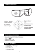 Wearing the device Align the cloth cover to your eyes, put on the device, adjust the elastic band, adjust the device to the most comfortable position. Hold the power button for 3 seconds to turn on the eye massage. Charging 1. Plug the power adapter into the USB port. 2. The indicator light is red during charging, and it will be in blue once the battery has been charged completely. 3. The product cannot be used during charging.