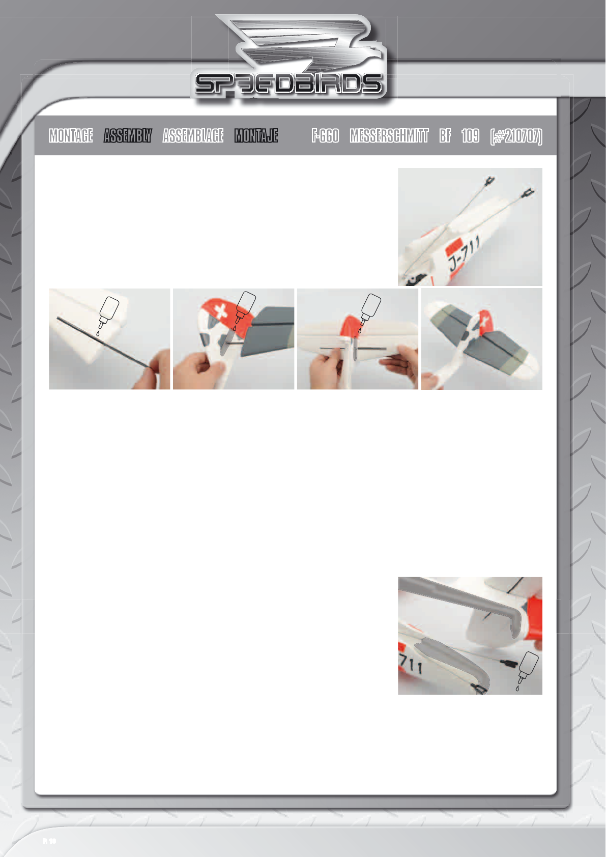 Assemblez l‘empennage complète comme dans les 4 images suivantes. Suivez étape par étape et vérifiez pour un ajustement précis du gouvernail profon-