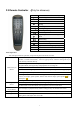 2.3 Remote Controller (Only for reference) 1-8 Channel Select 1-8 ; Numeric key 9、0 Numeric Key ALL Preview all Channel Menu Enter/Exit Main Menu ▲ Up Key ▼ Down Key ◄/ Left / Right Key SEL Select Key/ Edit Key Rewind key Play Key, Enter to recording search menu Forward Key ● Manual Recording Pause / Frame Play ■ Stop manual recording; Stop Playback Audio Undefined Mute Undefined Mouse Operation You could proceed mouse operation, except of front panel and remote controller.