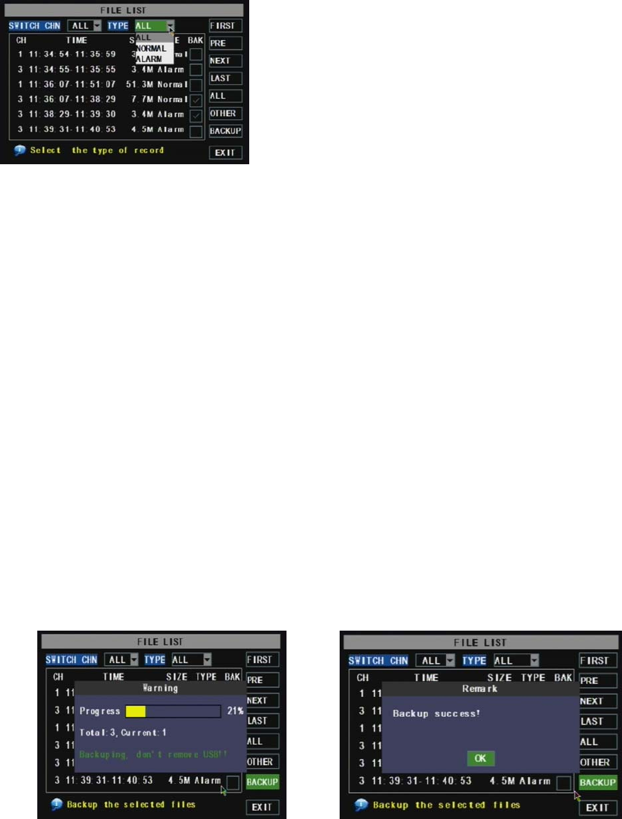 button, at this moment, you could select U flash disk or DVD recorder to backup recording file. Later you will be