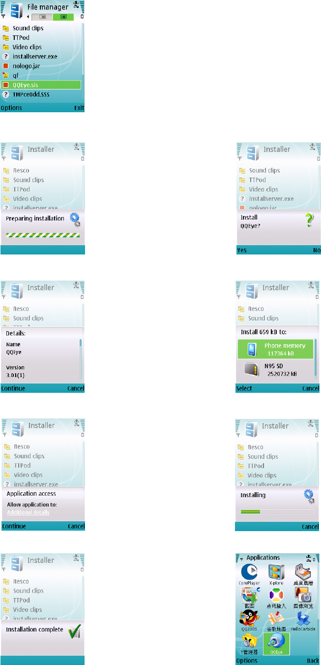 When operation system of mobile phone is based on Symbian,procedure as follows: