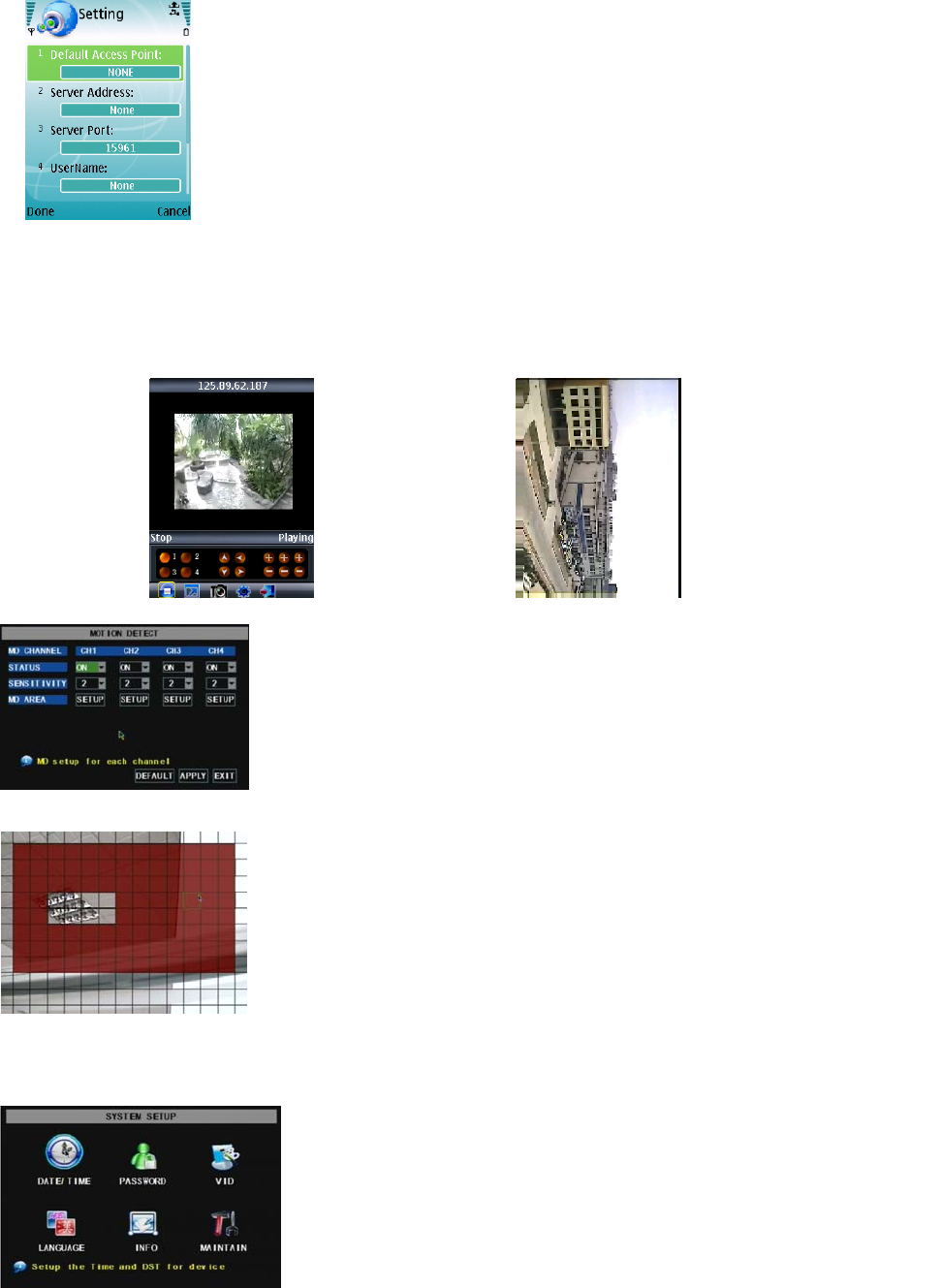 Server Address:Indicate IP address and DDNS of DVR on the public network.