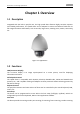 7 User Manual of 4-inch High Speed Dome Table of Contents Chapter 1 Overview .............................................................................................................................................. 1 1.1 Description ........................................................................................................................................................... 1 1.2 Functions ................................................................................................