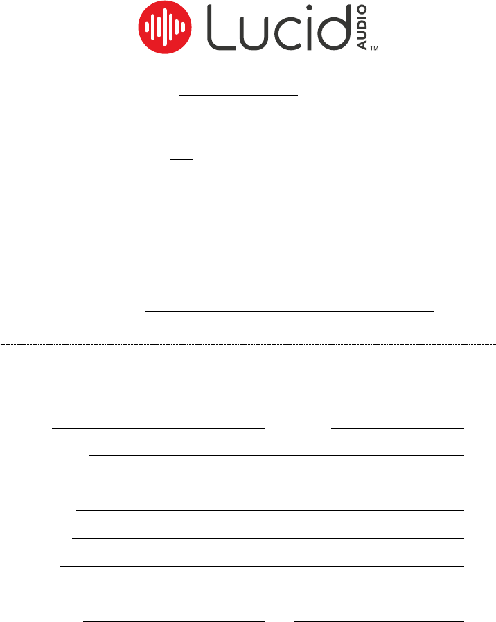 Lucid Audio warranties this product to the original purchaser to be free from defects in materials and workmanship, under normal