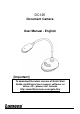 DC125 Document Camera User Manual - English [Important] To download the latest version of Quick Start Guide, multilingual user manual, software, or driver, etc., please visit Lumens http://www.MyLumens.com/goto.