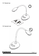 Chapter 3 Product Overview 5. Gooseneck 1. LED indicator 4. AF button 2. Microphone 3. Lens 6. Control panel 3.1 Description of LED indicator 1. Enable the image, and LED indicator will light up 2. Display the image, and LED indicator will light up 3. Disable the image, and LED indicator is OFF 3.