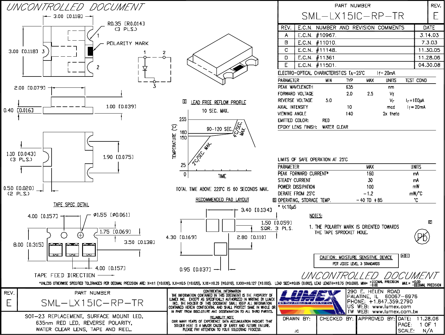 SMD LED SOT23-3 Red 10 mcd 140 ° 20 mA 2 V