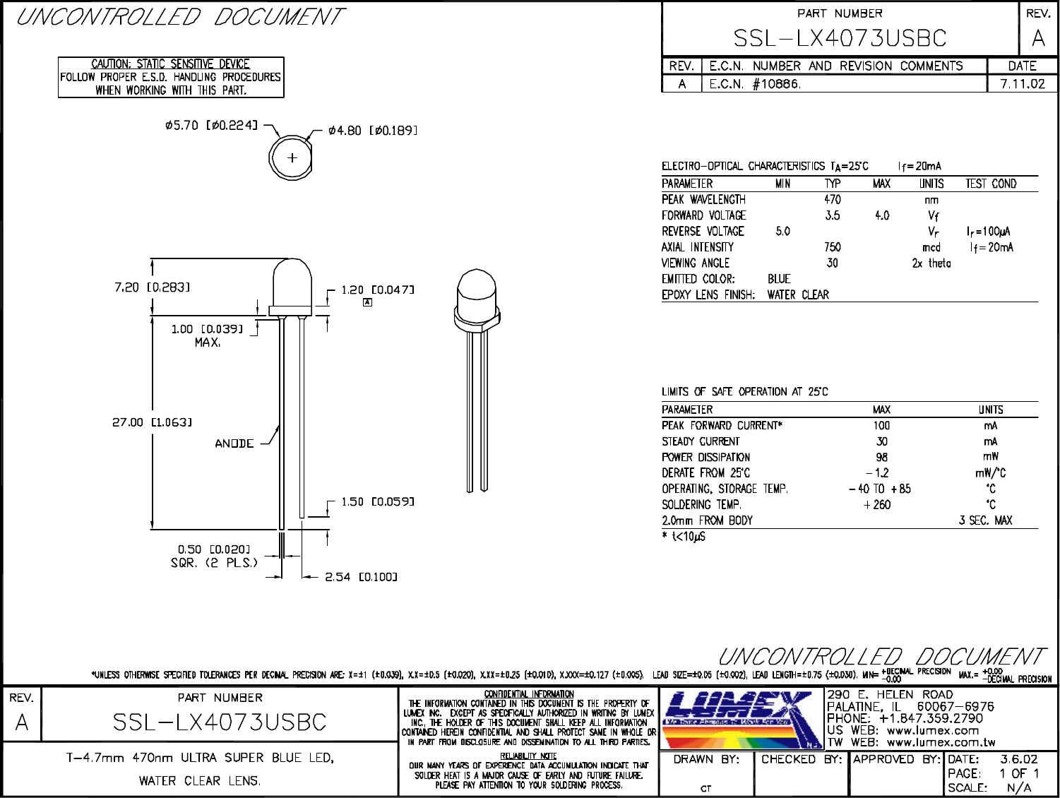 LED wired Blue Circular 4.8 mm 750 mcd 30 ° 30 mA 3.5 V