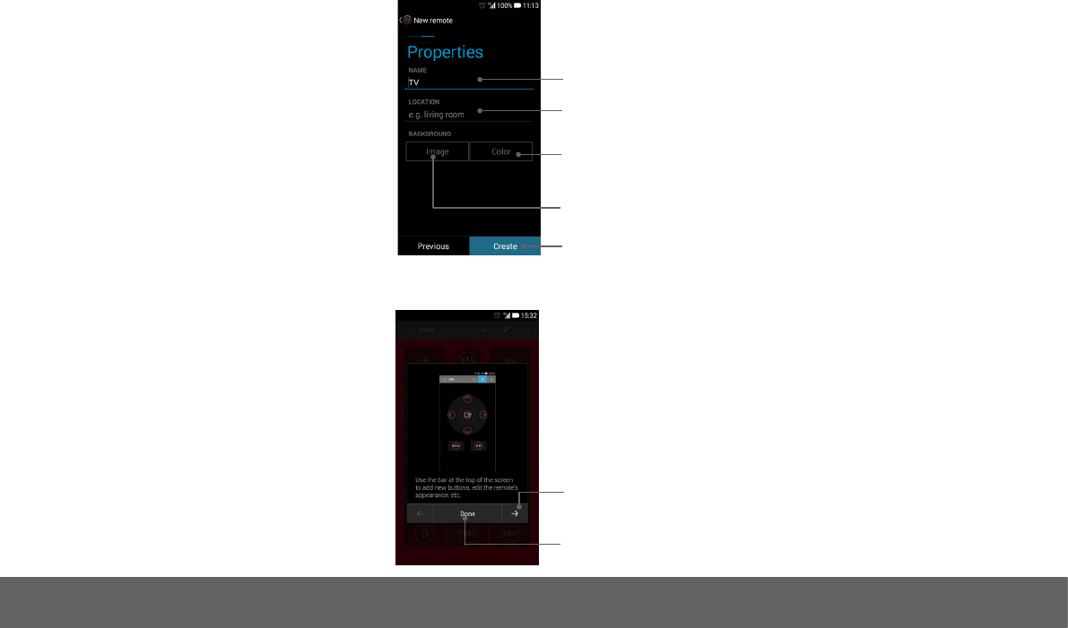 4 In the “Properties” screen, type the name of your remote control, e.g. TV (A.) and location, e.g.