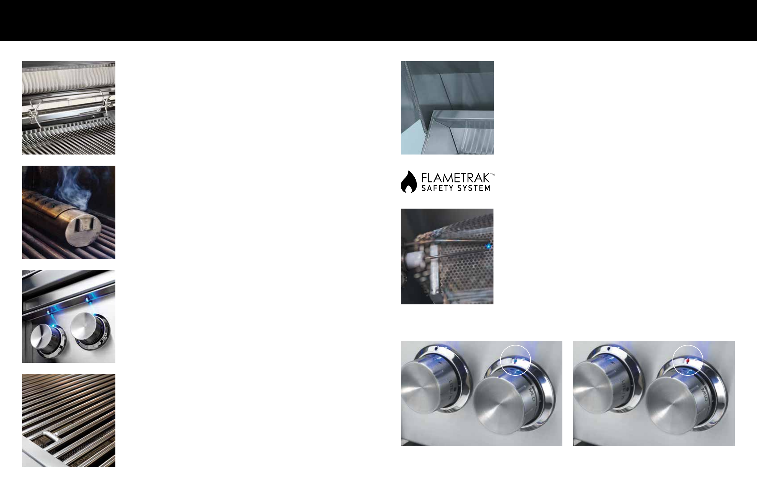 each burner, the Flametrak system helps provide grill safety whether a flame fails to ignite or a flame