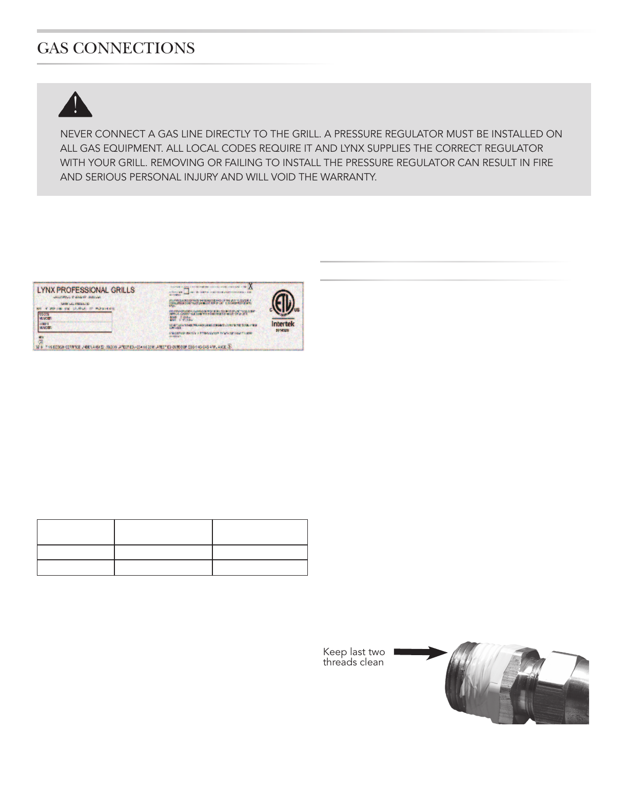 ALL GAS EQUIPMENT. ALL LOCAL CODES REQUIRE IT AND LYNX SUPPLIES THE CORRECT REGULATOR