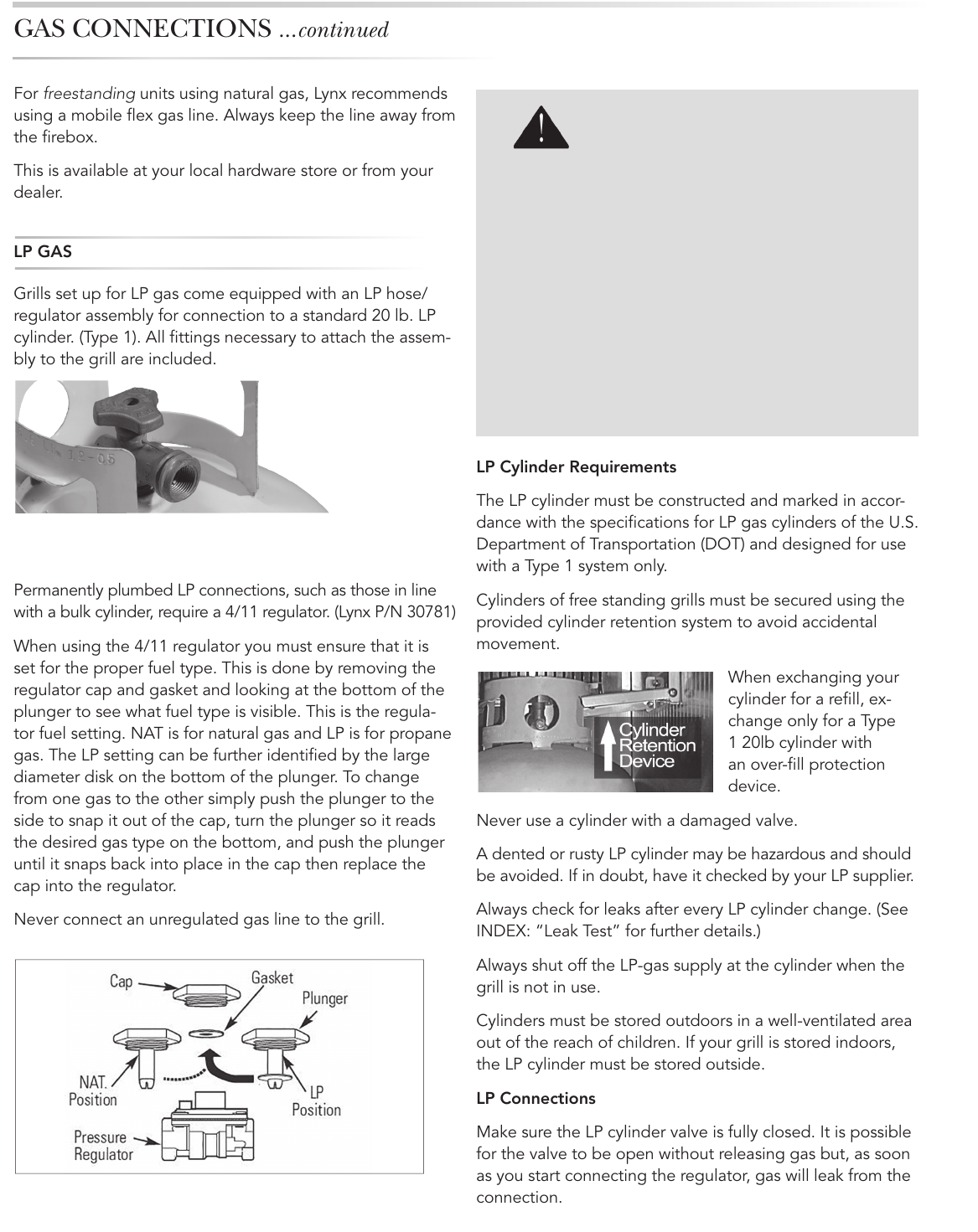 with a bulk cylinder, require a 4/11 regulator. (Lynx P/N 30781)