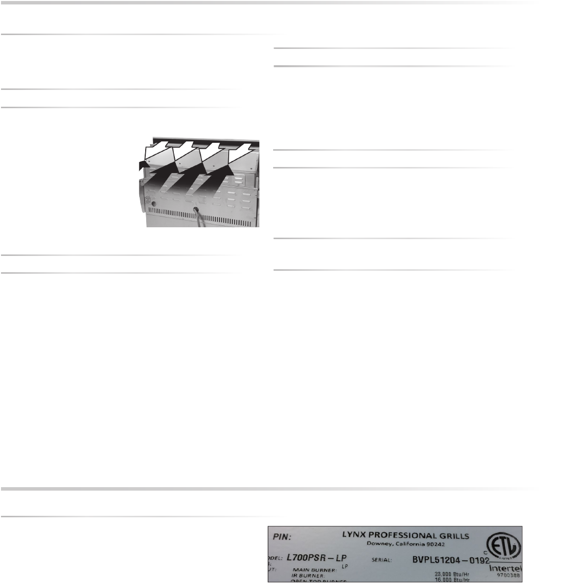 knob, contact Lynx Customer Care. (See INDEX: “Contact-