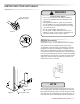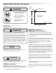 INSTALLING THE ANTI- TIP DEVICE WARNING ! • ALL APPLIANCES CAN TIP RESULTING IN INJURY. • INSTALL THE ANTI-TIP BRACKET PACKED WITH THE APPLIANCE. • FOLLOW THE INSTRUCTIONS BELOW Anti-Tip Bracket 211⁄2" (54.6 cm) Leveling Leg Bottom View of Refrigerator Front of cabinet Figure 7 Anti-Tip Device ! WARNING If your refrigerator is not located under a counter top (free standing), you must use an anti-tip device installed as per these instructions.