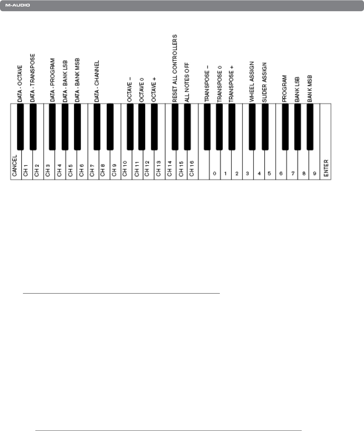 Im obigen Diagramm tragen die ersten sechs schwarzen Tasten die Bezeichnung “DATA = OCTAVE, DATA = TRANSPOSE, DATA