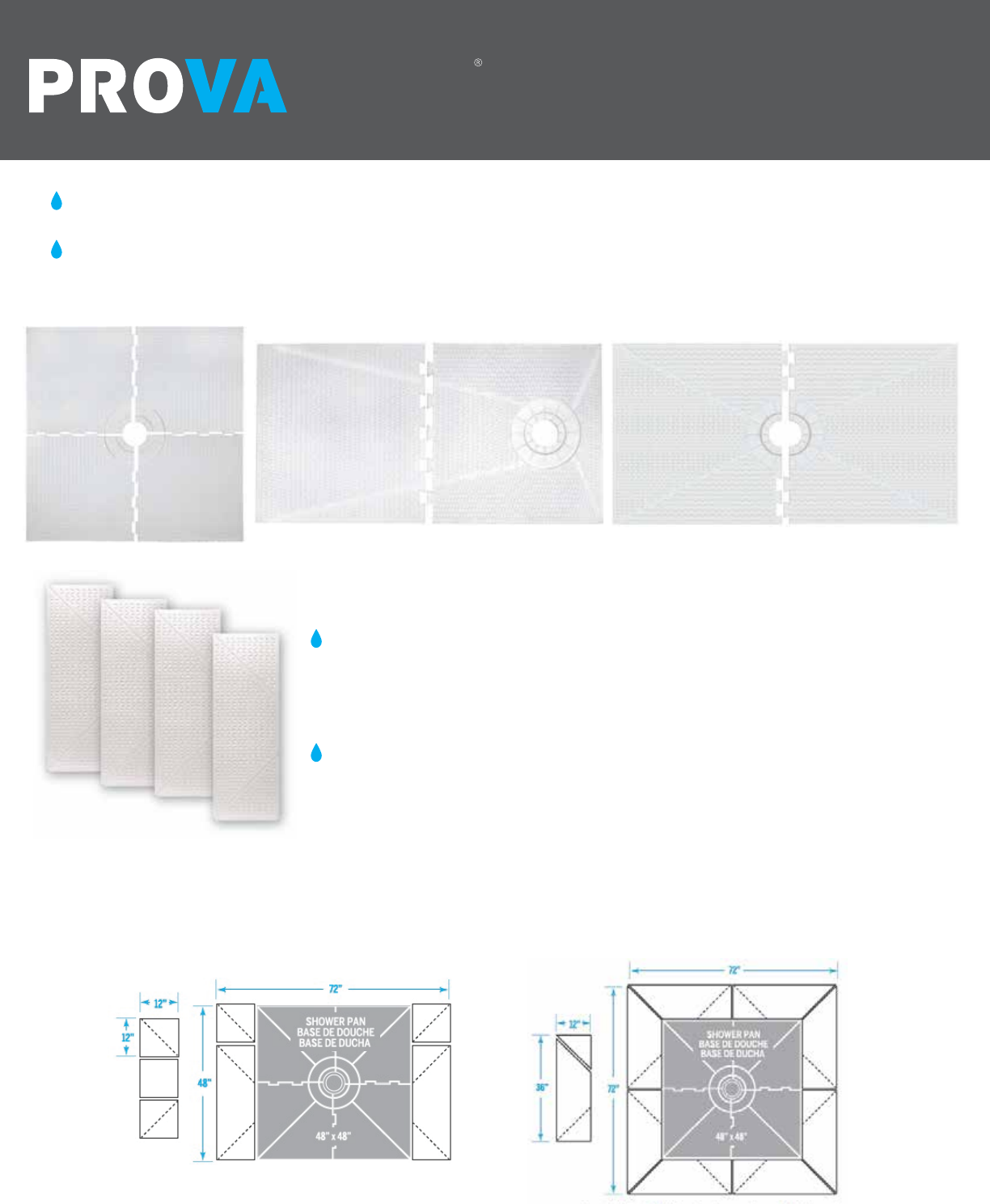 Three sizes of PROVA-SHOWER kits (Shower Pans) available