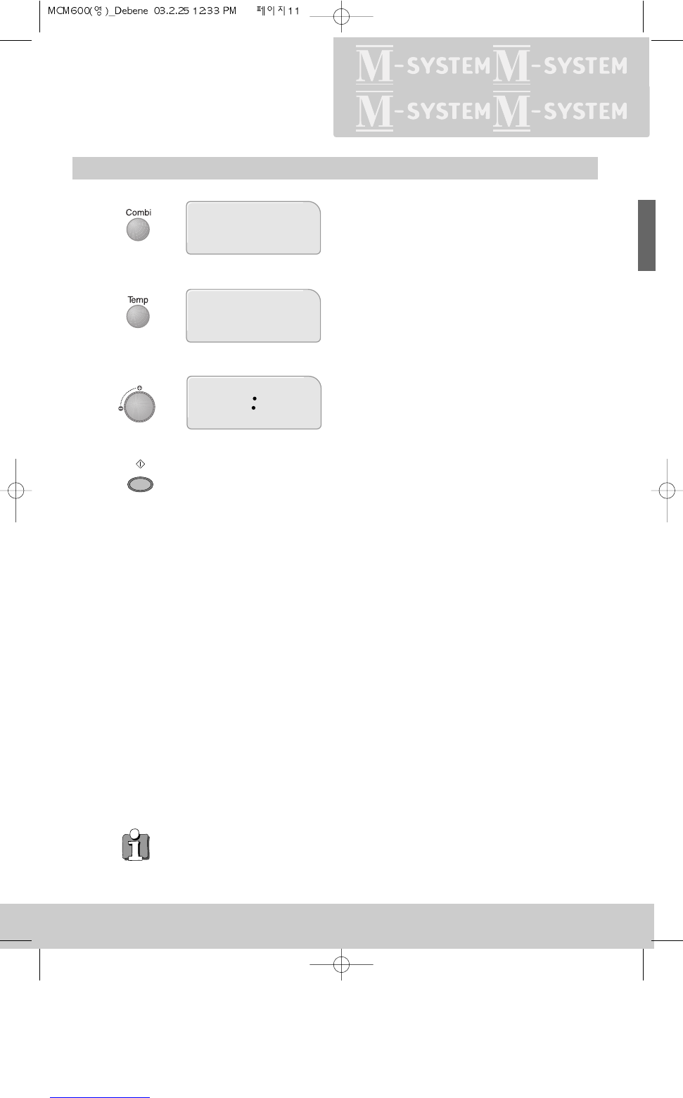 ◆ To check the temperature during cooking press Temp, after a few seconds the display shows the cooking time