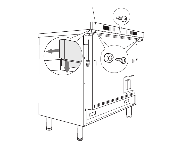 – Remove the two spacers “A” and the screw “B” from the rear of the cooktop.