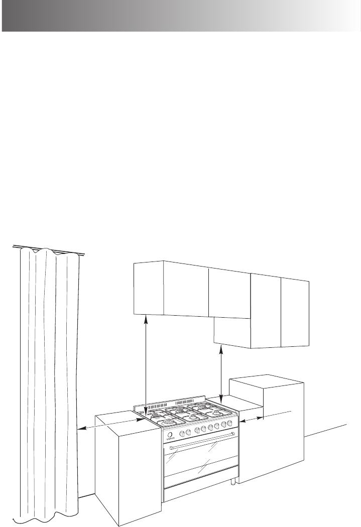 Het fornuis moet overeenkomstig Afb. 7.1 geïnstalleerd worden.