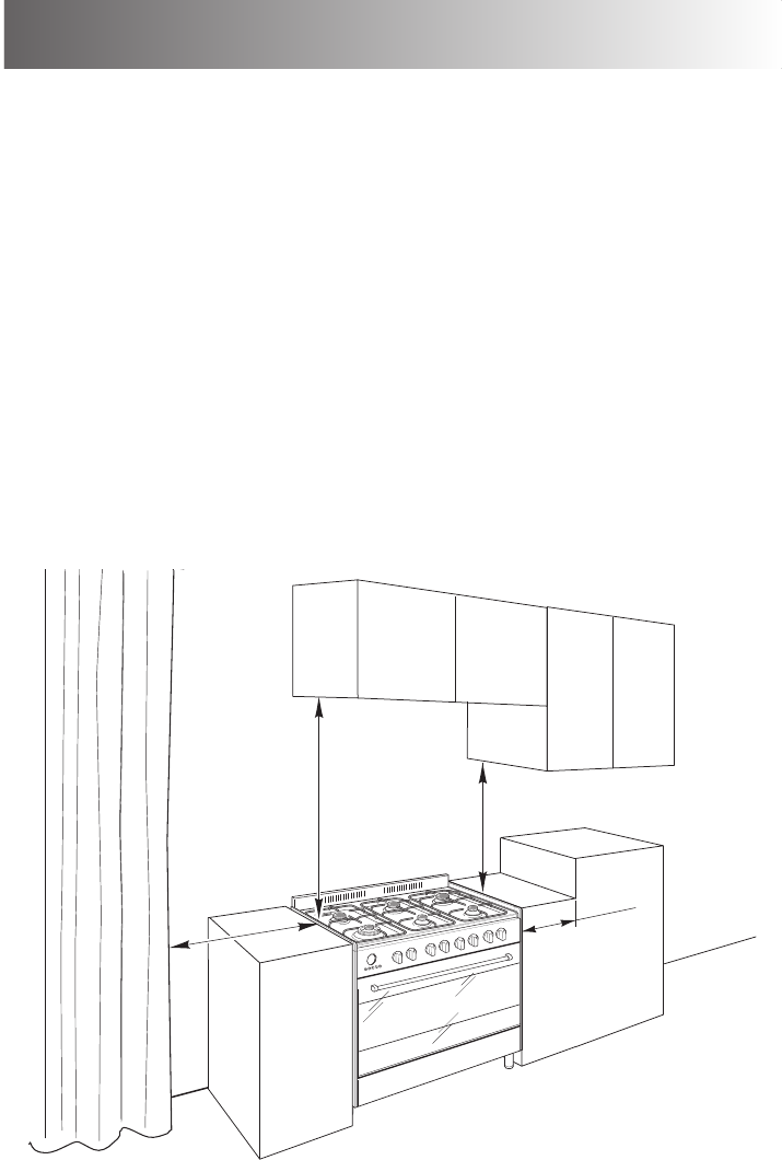 Es ist von grundlegender Wichtigkeit, dass der Herd wie unten angegeben aufgestellt wird.