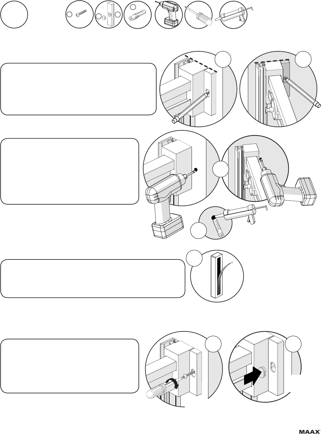D. Fixer avec les vis fournies. Insérer les cache-vis en