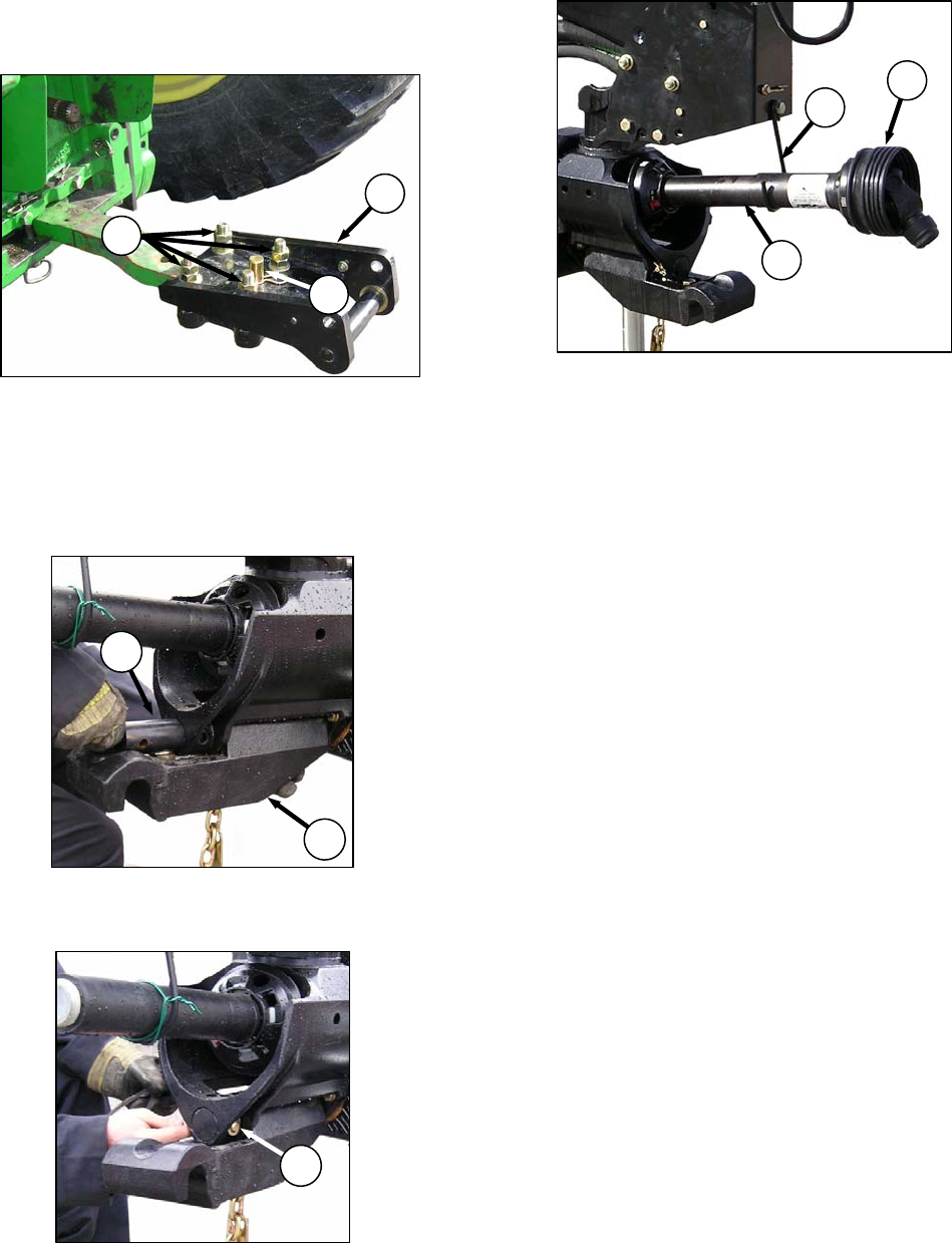 h. Locate PTO shaft in hook (J).