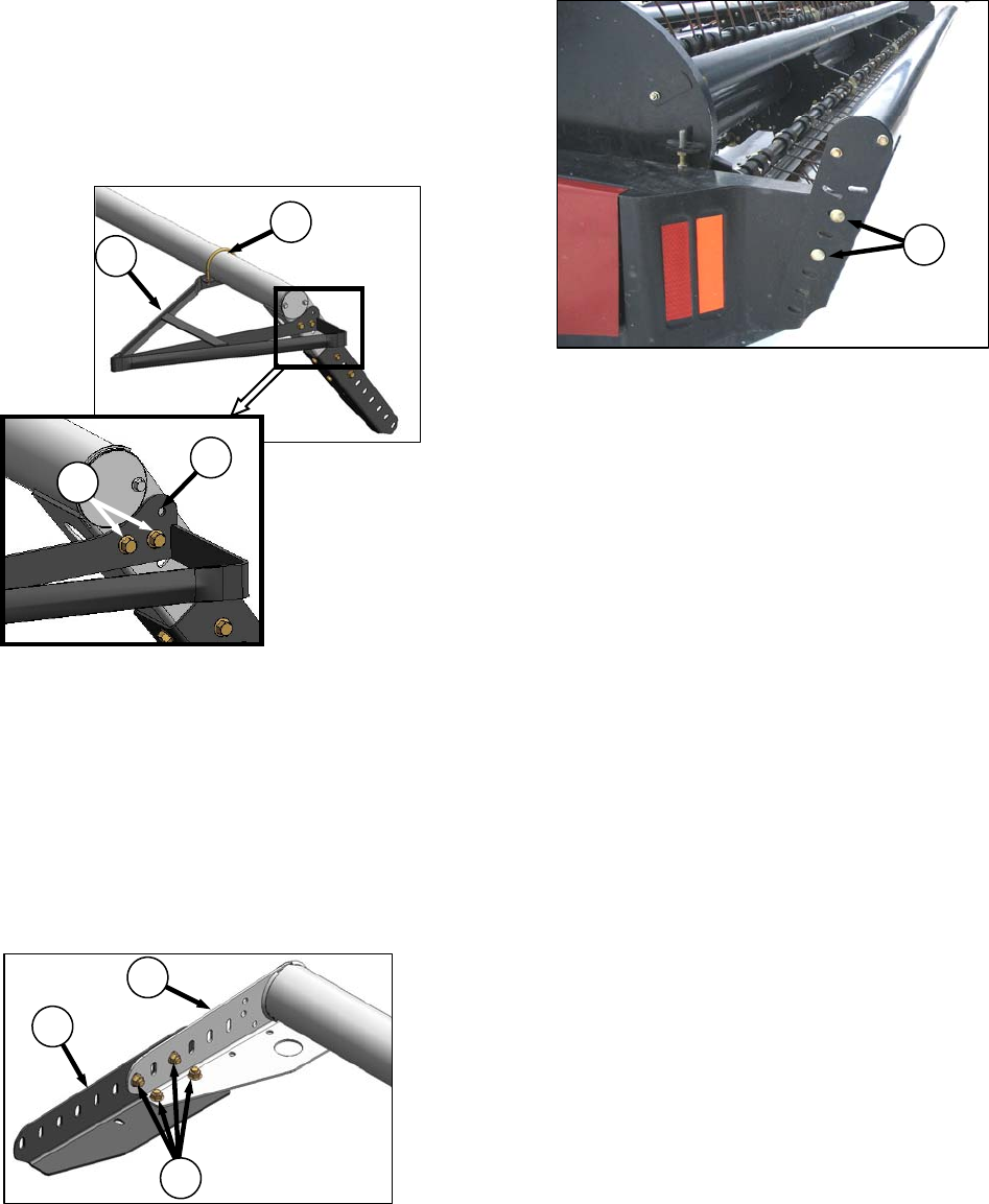 - 5.Attach adjuster rods (B) to side deflectors (C) with lynch pin (A).