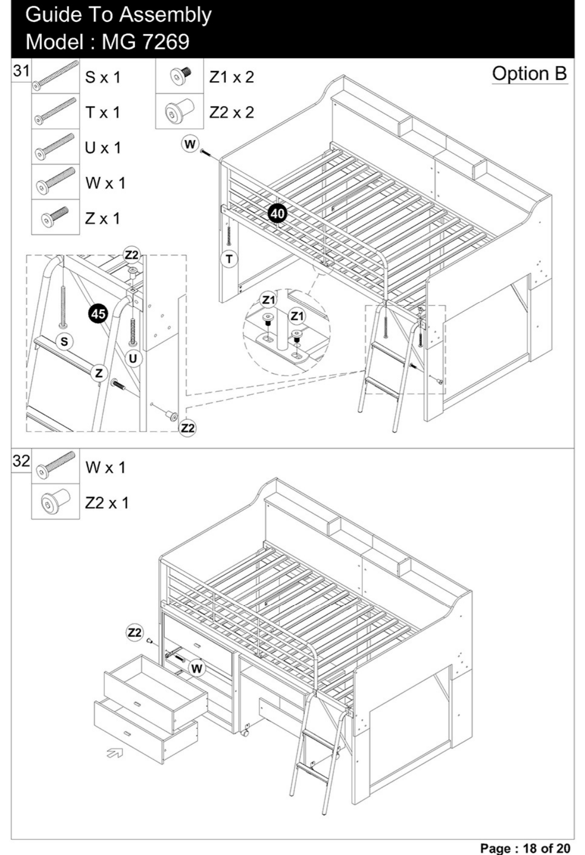 Alcester Twin Low Loft Bed with Drawers