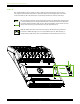 DL806 and DL1608 Owner’s Manual PadLock™ Also included with the mixer is a PadLock. This is used to lock the iPad into place on the mixer. One might use this for fixed installs where a dedicated iPad is used and (Pad)locked to the mixer. Or leave the PadLock off so the iPad may be conveniently transferred in and out of the mixer. After docking the iPad (not shown), the PadLock needs to be attached by moving it right to left [horizontal green arrows], NOT downward.