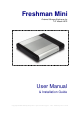 Table of Contents CHAPTER 1 - INTRODUCTION -1- CHAPTER 3 - SYSTEM SET UP -5- ICON KEY -1- CONNECTION TO YOUR COMPUTER -5- THE FRESHMAN MINI -1- INSTALLATION ON A PC -6- AVAILABLE INTERFACES -1- WINME, WIN2000 OR WINXP WITH USB -6- SYSTEM REQUIREMENTS -2- WIN98/SE WITH USB -6- PC REQUIREMENTS -2- UNPLUG PROCEDURE -6- MAC REQUIREMENTS -2- INSTALLATION ON A MACINTOSH -7- PACKAGE CONTENTS -2- MAC OS 9 OR MAC OS X WITH USB 1.1 -7- MAC OS 10.2 OR 10.3 WITH USB 2.
