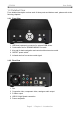 P7-3500 User Guide 1.4 Detailed View For a detailed description on how each of these ports and buttons work, please refer to the following chapters. 1.4.1 Front View Z X 1. 2. 3. 4. 5. [ \ Y USB host (upstream) connector for external USB drives. Card reader slot for SD/MMC/MS/MS Pro cards. Key pad for basic navigation and controls without remote control. ON/OFF power switch. Infrared receiver for remote control signal. 1.4.2 Rear View Y X 1. 2. 3. 4. 5.
