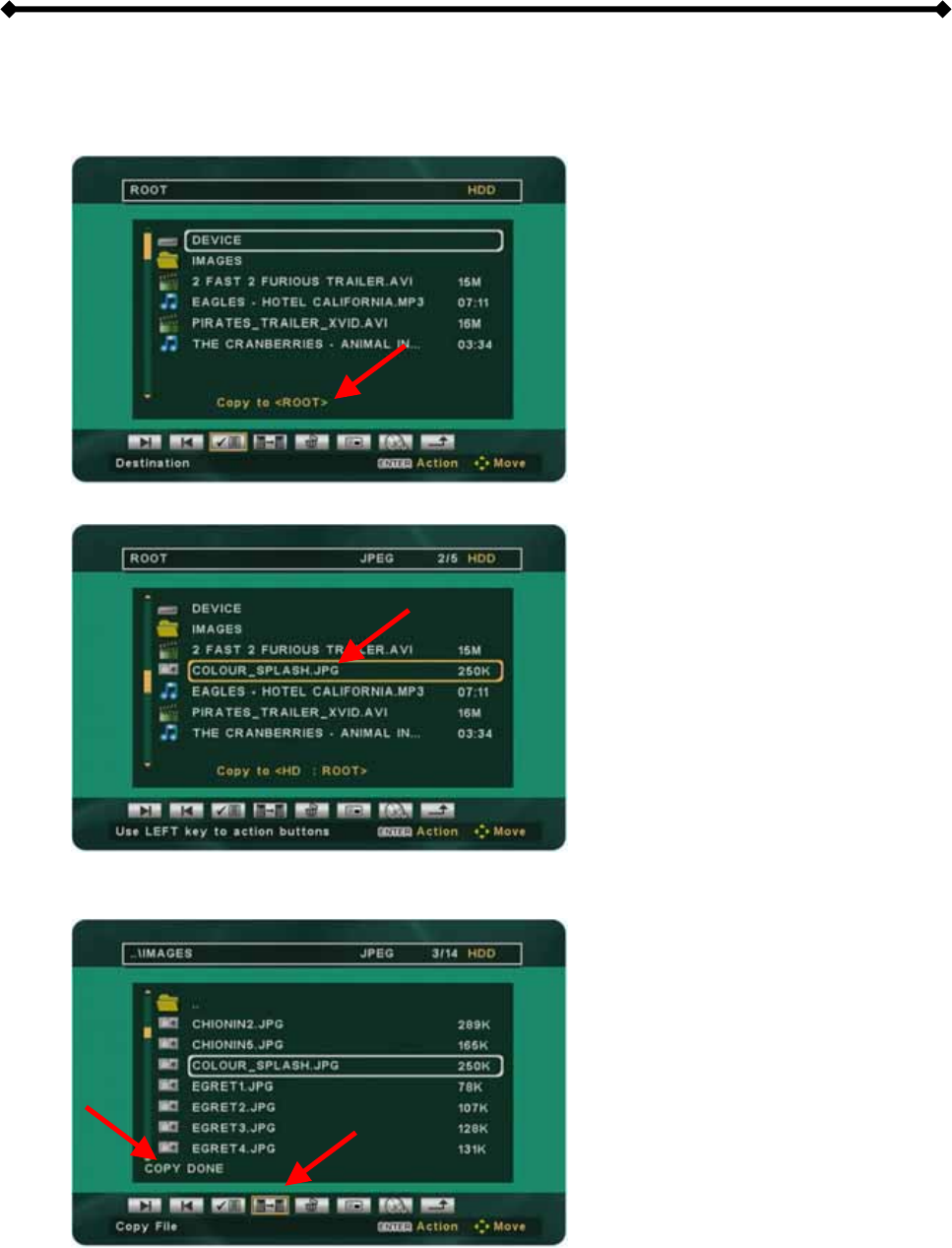 5. Go back to the action buttons, select Copy and press the Enter key to copy the file.