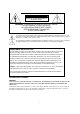 WARNING RISK OF ELECTRIC SHOCK DO NOT OPEN WARNING: TO REDUCE THE RISK OF ELECTRIC SHOCK, DO NOT REMOVE COVER (OR BACK). NO USER-SERVICEABLE PARTS INSIDE. REFER SERVICING TO QUALIFIED SERVICE PERSONNEL. The lightning flash with arrowhead symbol, within an equilateral triangle, is intended to alert the user to the presence of uninsulated "dangerous voltage" within the product’s enclosure that may be of sufficient magnitude to constitute a risk of electric shock.