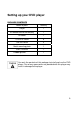 Setting up your DVD player PACKAGE CONTENTS Name of parts Quantity Player 1 IR remote control with battery 1 AV cable 1 ST4.2x16 screw 6 CM 4x8 screw 4 Metal mounting plate 1 User’s manual 1 Rubber gasket 1 Use only the contents of this package to install and use the DVD player. Use of any accessories not provided with this player may result in damage to the player.