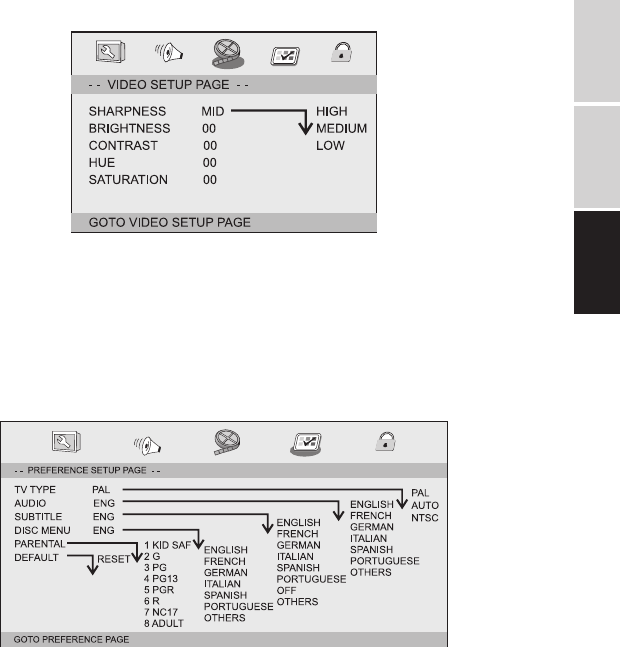 Réglages vidéo: