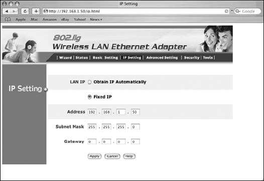 • Your local wireless network is in an IP domain other than "192.168.1.x" (x