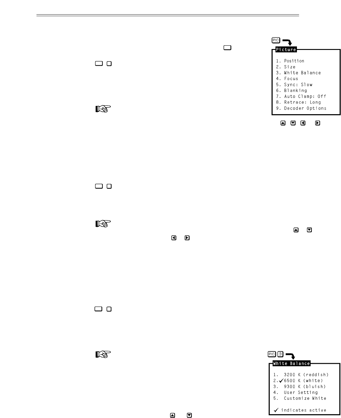 Note: If the picture cannot be made entirely visible, an adjustment to blanking