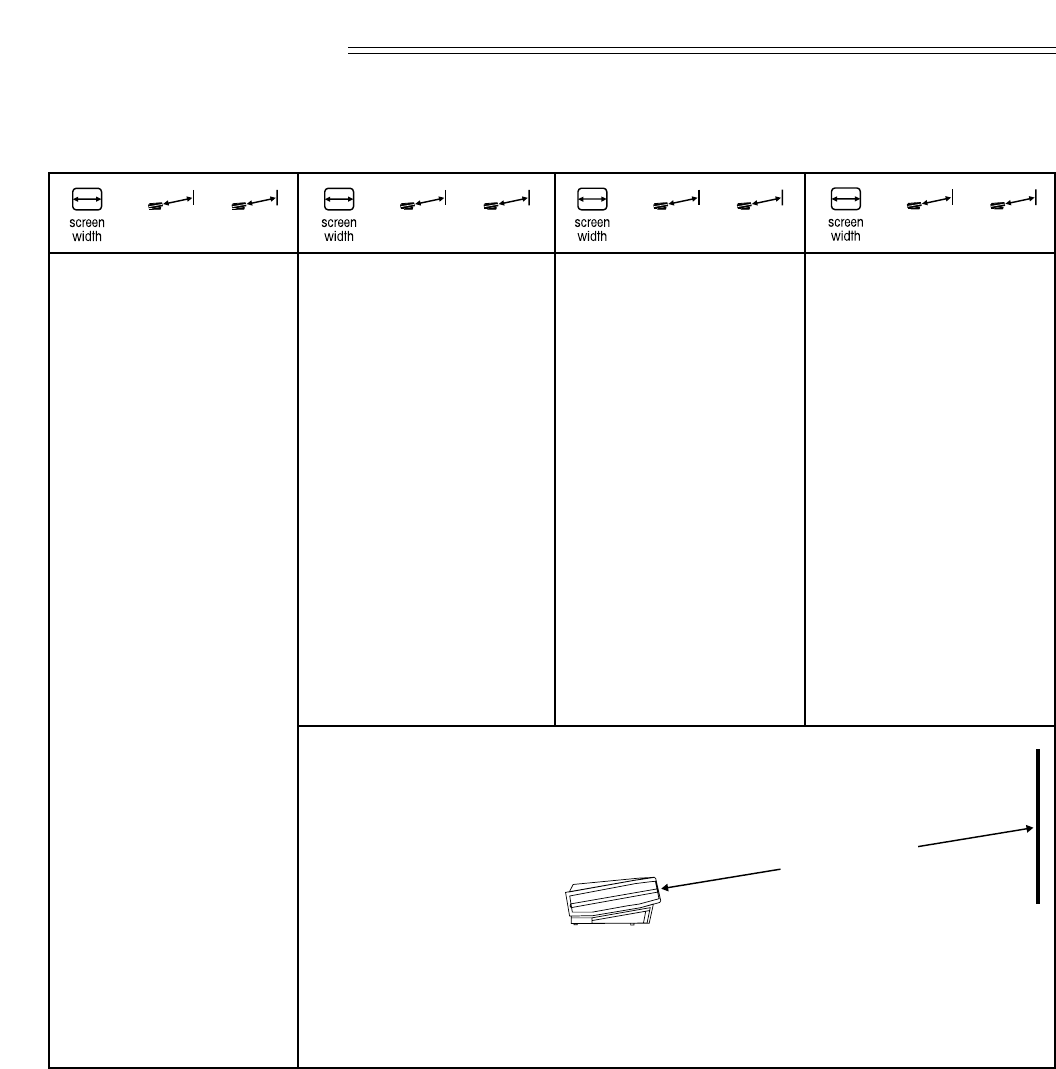 Measure the screen width, then find it in the table. The required throw distance is shown.