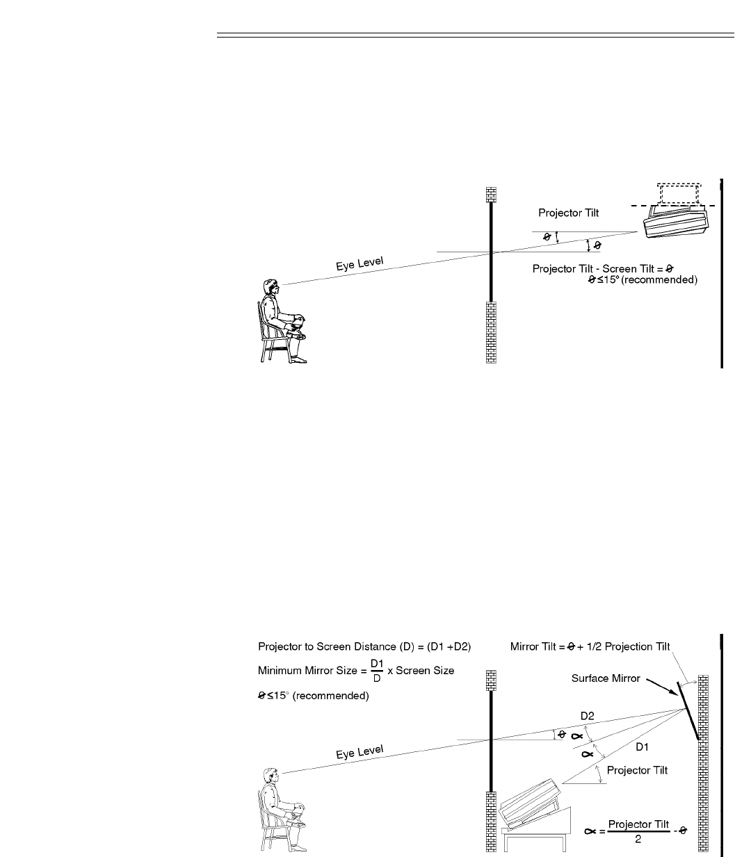 screen is used, the projection angle Ø should be less than 15°. If an optical