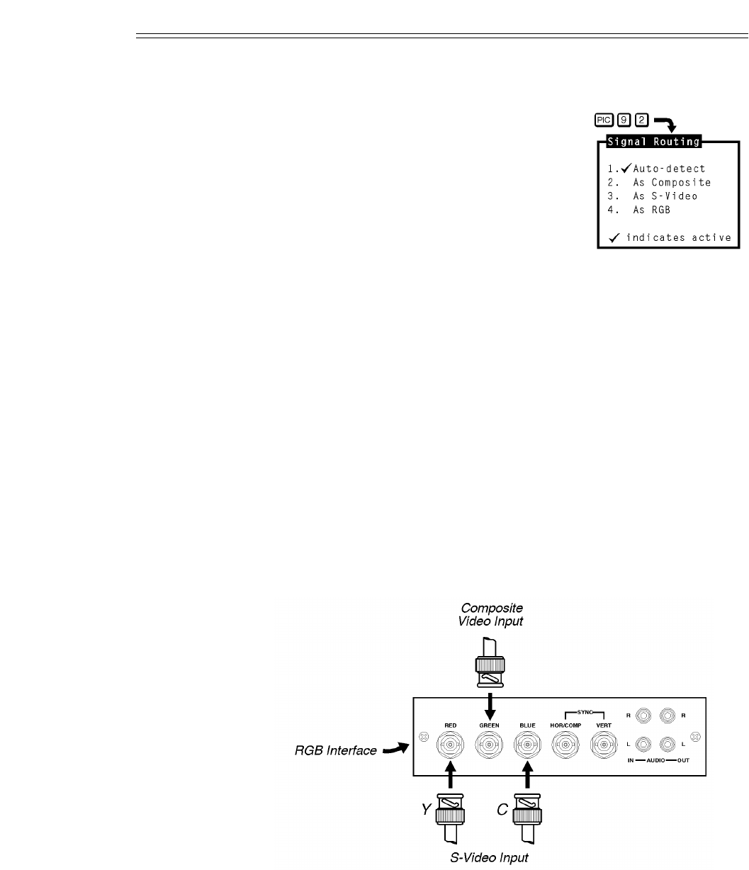 3-6 illustrates the connection of a composite or S-Video signal to an RGB