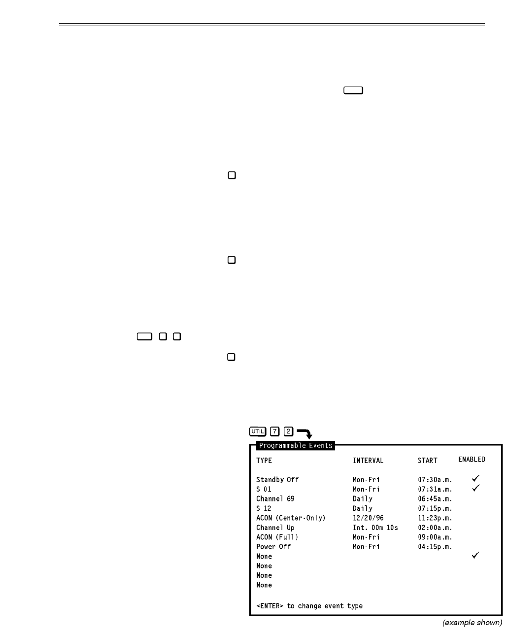 Press from the Clock/Events menu to display the Programmable Events