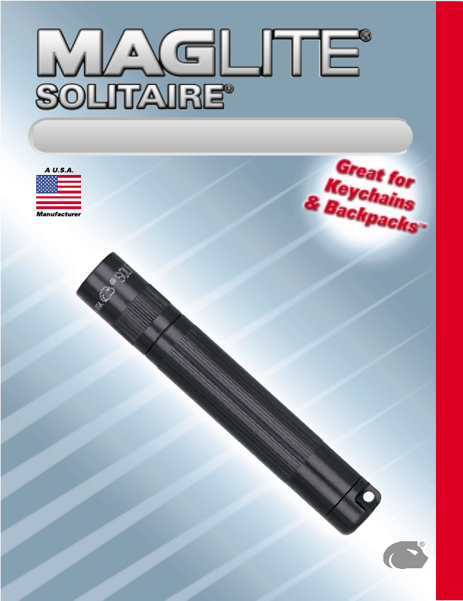 SOLITAIRE Solitaire® Single Cell AAA (LR03) Flashlight Lampe torche Solitaire® à 1 pile type AAA (LR03) 1 Batterie Typ AAA (LR03) Solitaire® Taschenlampe Lampadina tascabile Solitaire® a 1 batteria tipo AAA (LR03) FEATURES • Durable Aluminum Alloy Case • Ten Year Limited Warranty - Detailed warranty and operating instructions are enclosed • Light Beam is Adjustable from a Wide Flood to an Intense Spot (1) • Includes a Spare Bulb in the Tail Cap (2) • Innovative extended key lead allows the light beam and k